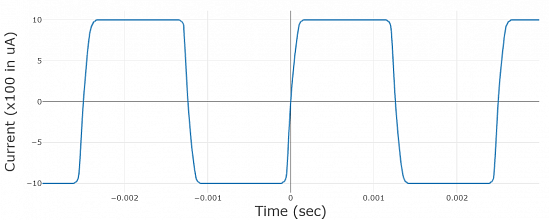 COMING SOON!7101 is under developmentplease contact CPS for completion date CPS Model 7101 is a single output, constant current ,+/- 8 kV AC power supply. AC WaveformOptimized for Dielectric Barrier Discharge (DBD) equipment, the 7101 provides a square waveform of balanced positive and negative current. Maximum RMS current is 1mA at a voltage of up to 8 kV per polarity, or 16 kV peak-to-peak. Default frequency is 400Hz, configurable from 5HZ to 2000Hz. Below is the 7101 waveform with an output connected to a resistive load. Shown at maximum power, configured at 400Hz: